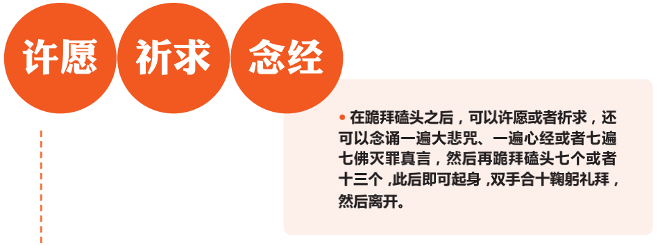 1.许愿:不杀生、吃素、度人、印经书、刻光盘(根据自己的愿力、条件许愿)。【每个人的境界不同,需要量力而行,不宜要求所有人一定要按照某个愿力来发愿。】
